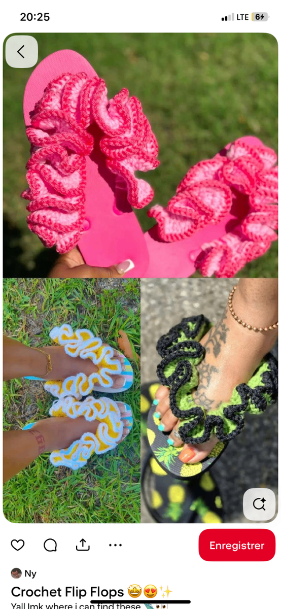 Découvrez ces tongs uniques et vibrantes en crochet, parfaites pour apporter une touche d'originalité à votre style estival. Confortables et aérées, elles sont idéales pour une journée à la plage ou pour se prélasser dans le jardin. Offrez-vous le confort et le style avec ces flip-flops faites main, une véritable œuvre d'art à vos pieds!