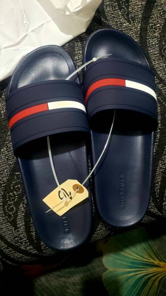 Chaussons de plage élégants pour homme. Design moderne avec bandes colorées, parfait pour les vacances et la piscine. Confortables et stylés, idéaux pour toute occasion décontractée.