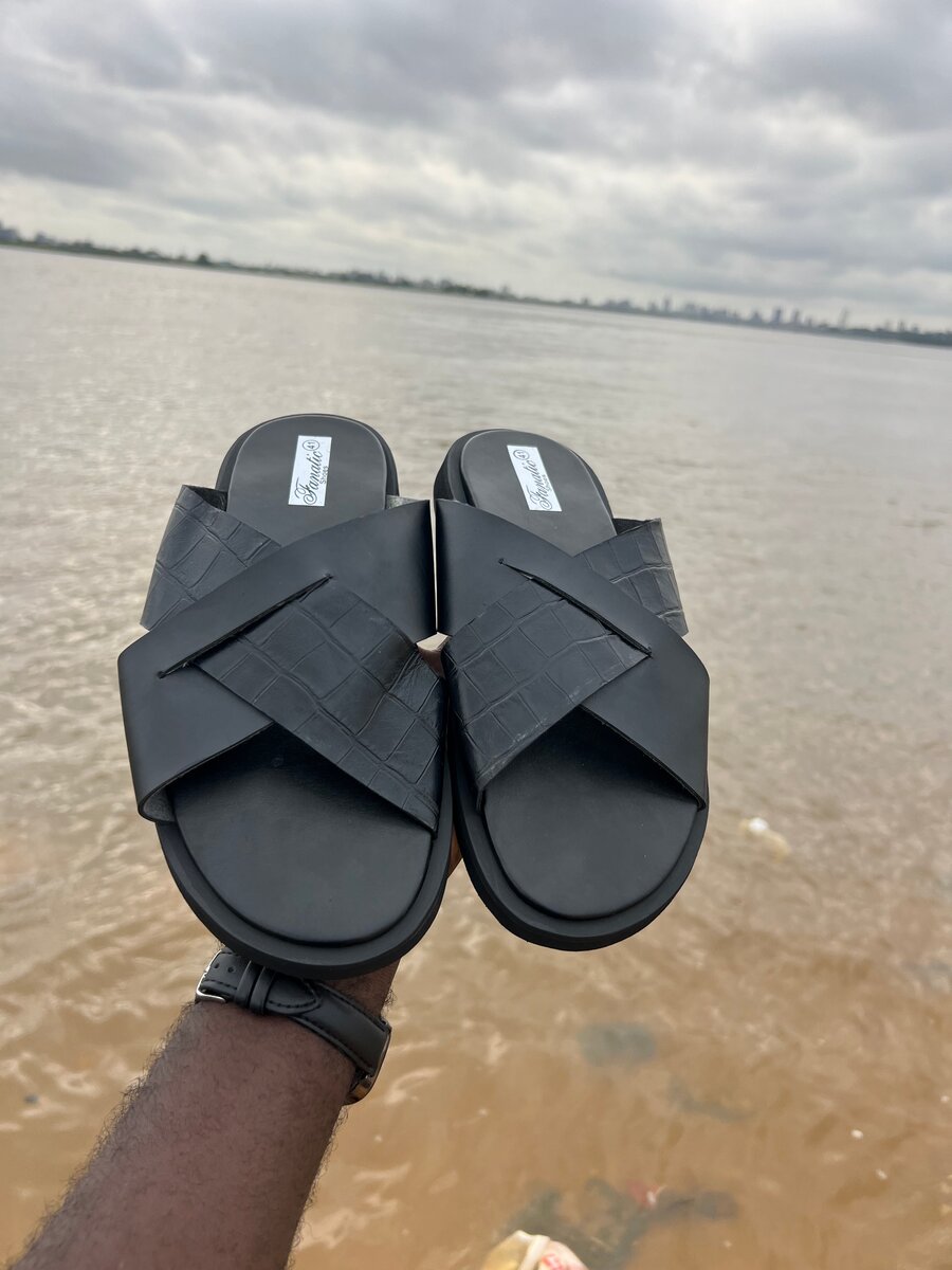 Découvrez le confort suprême avec ces tongs en cuir noir. Design moderne avec sangles croisées, parfait pour une sortie décontractée ou un style urbain chic. Idéal pour les journées ensoleillées.