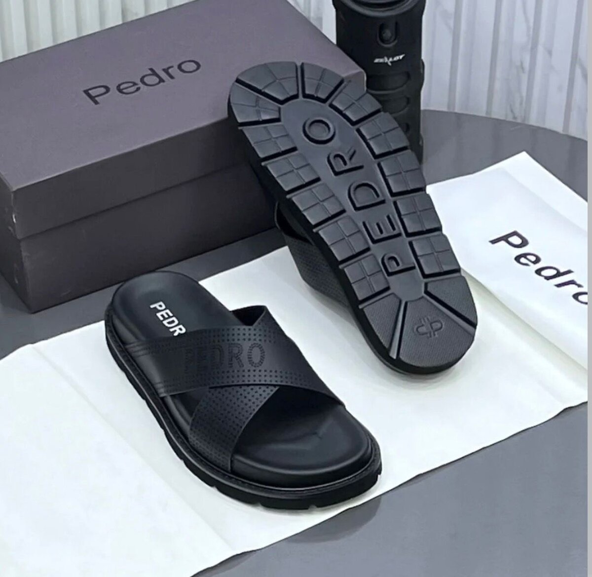 Découvrez le confort et le style des tongs en cuir pour homme de Pedro. Idéales pour les sorties décontractées, elles offrent une semelle antidérapante pour une marche sûre et agréable. Parfaites pour l'été ou les moments de détente à la maison, elles combinent élégance et durabilité.