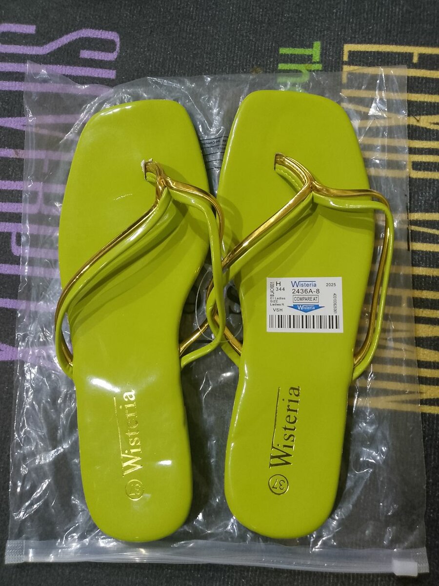 Optez pour ces tongs Wisteria vertes élégantes, parfaites pour un look estival décontracté. Confectionnées avec des matériaux durables, elles offrent un confort optimal tout au long de la journée. Idéales pour la plage, les balades en ville ou les sorties décontractées. Le choix idéal pour vos escapades estivales!