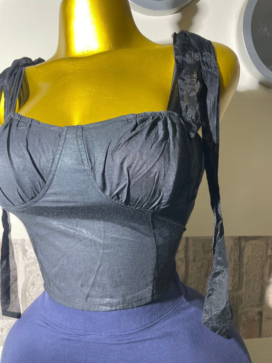 Découvrez ce top élégant avec bretelles à nouer. Idéal pour un look chic et féminin, il s'adapte à toutes les occasions. Sa coupe ajustée met en valeur votre silhouette. Portez-le avec une jupe ou un jean pour un style moderne et tendance.