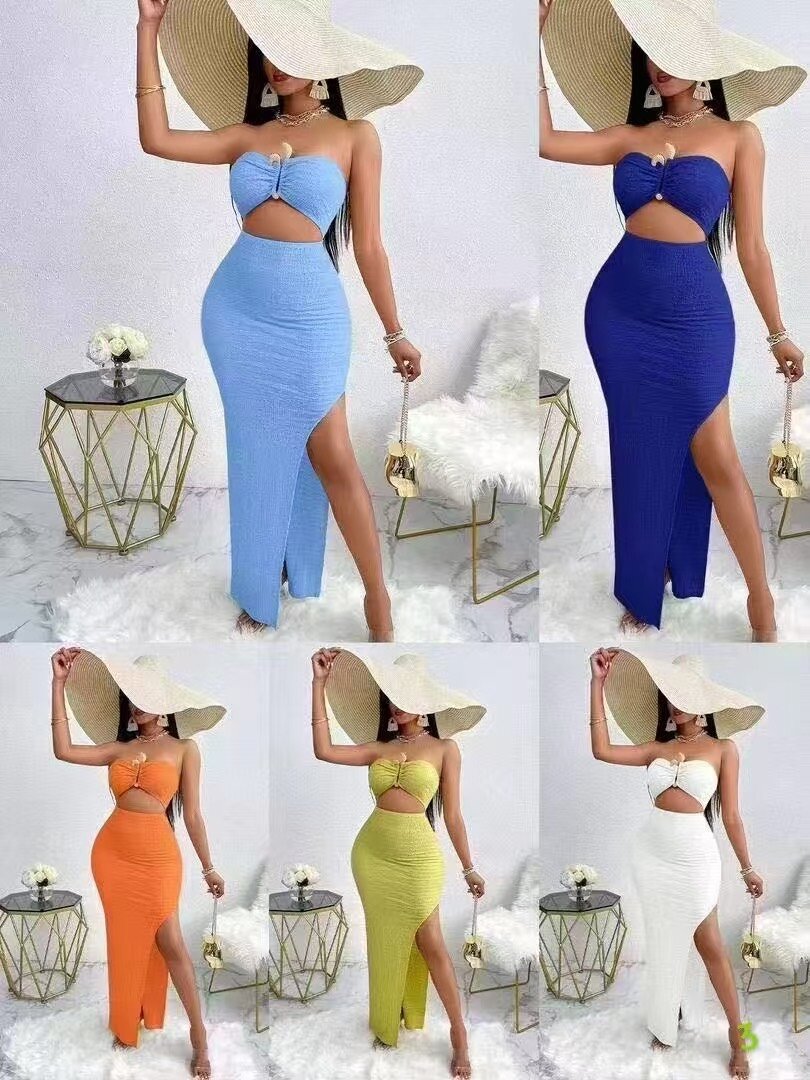SHEIN Firerie Solid Crop Halter Top & Twist Front Split