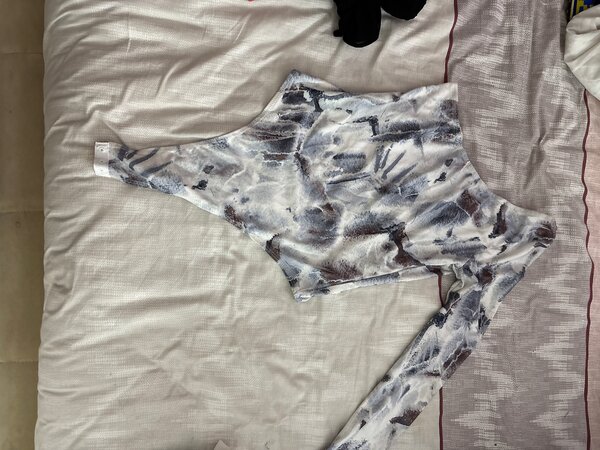 Découvrez ce top asymétrique élégant aux manches longues et imprimé marbré. Parfait pour un look chic et moderne, il s'accorde facilement avec une jupe ou un jean pour diverses occasions.