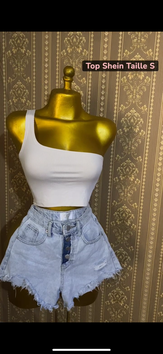 Optez pour ce top asymétrique blanc de Shein, parfait pour un look chic et décontracté. Idéal pour les sorties estivales, sa coupe moderne s'adapte à toutes les morphologies. Associez-le facilement avec des shorts en jean ou des jupes pour un style tendance.