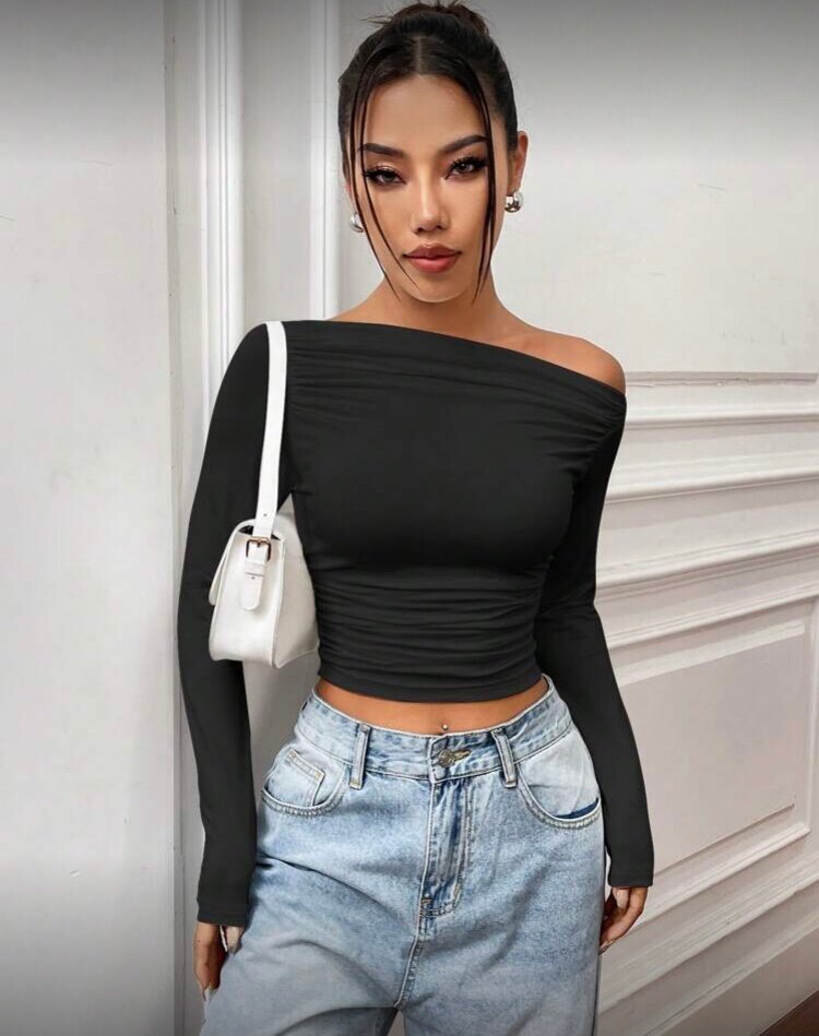 Découvrez notre top asymétrique noir, idéal pour une tenue élégante et tendance. Confectionné dans un tissu doux et extensible, il épouse parfaitement vos formes pour un confort optimal. Parfait pour une soirée ou une sortie décontractée. Associez-le avec un jean ou une jupe pour un look moderne et stylé.