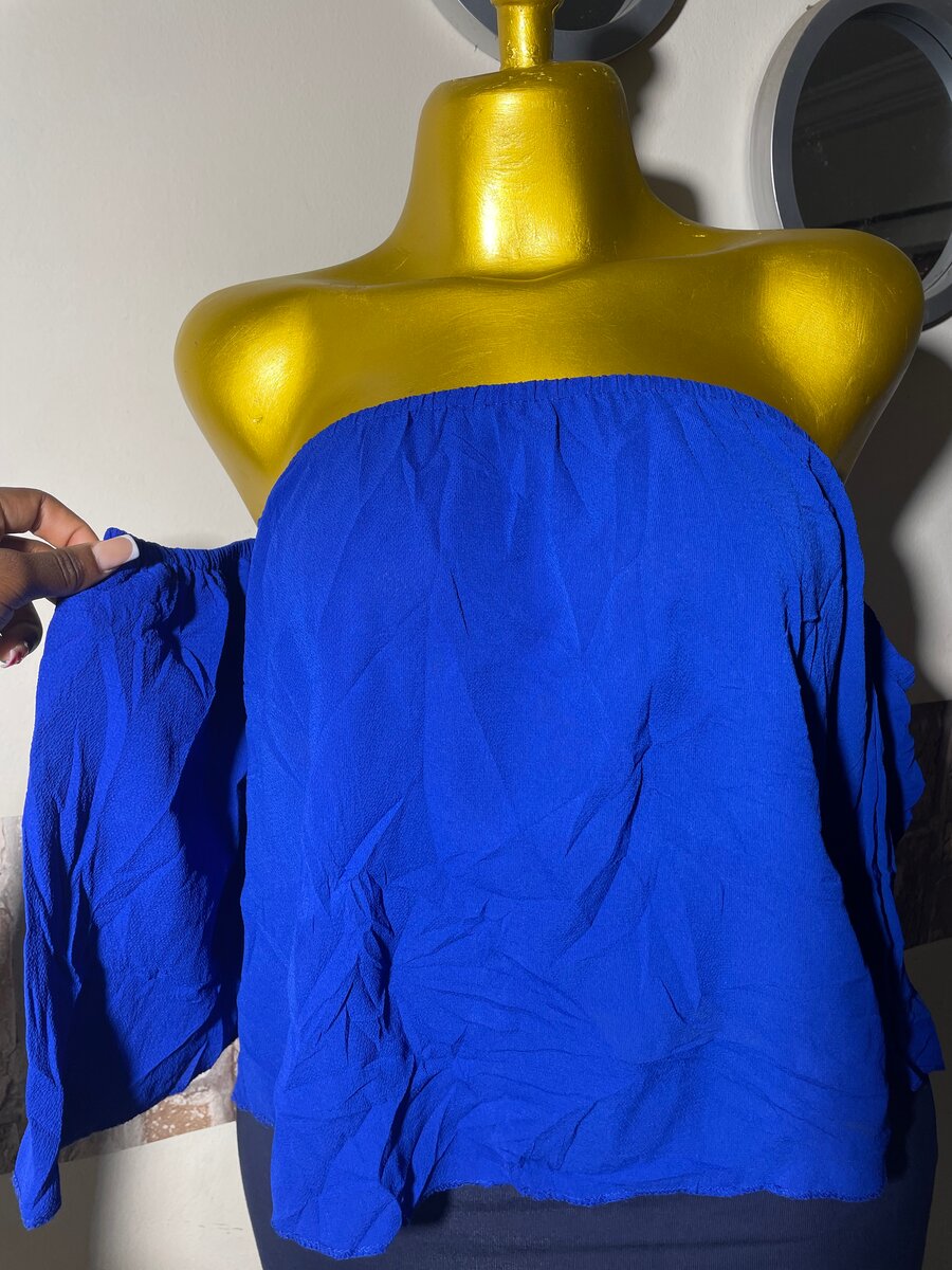 Ce top bandeau bleu est un choix idéal pour les soirées d'été ou une sortie décontractée. Conçu pour souligner votre silhouette, il offre un look chic et moderne. Facile à assortir avec un jean ou une jupe, c'est un incontournable de votre garde-robe estivale.