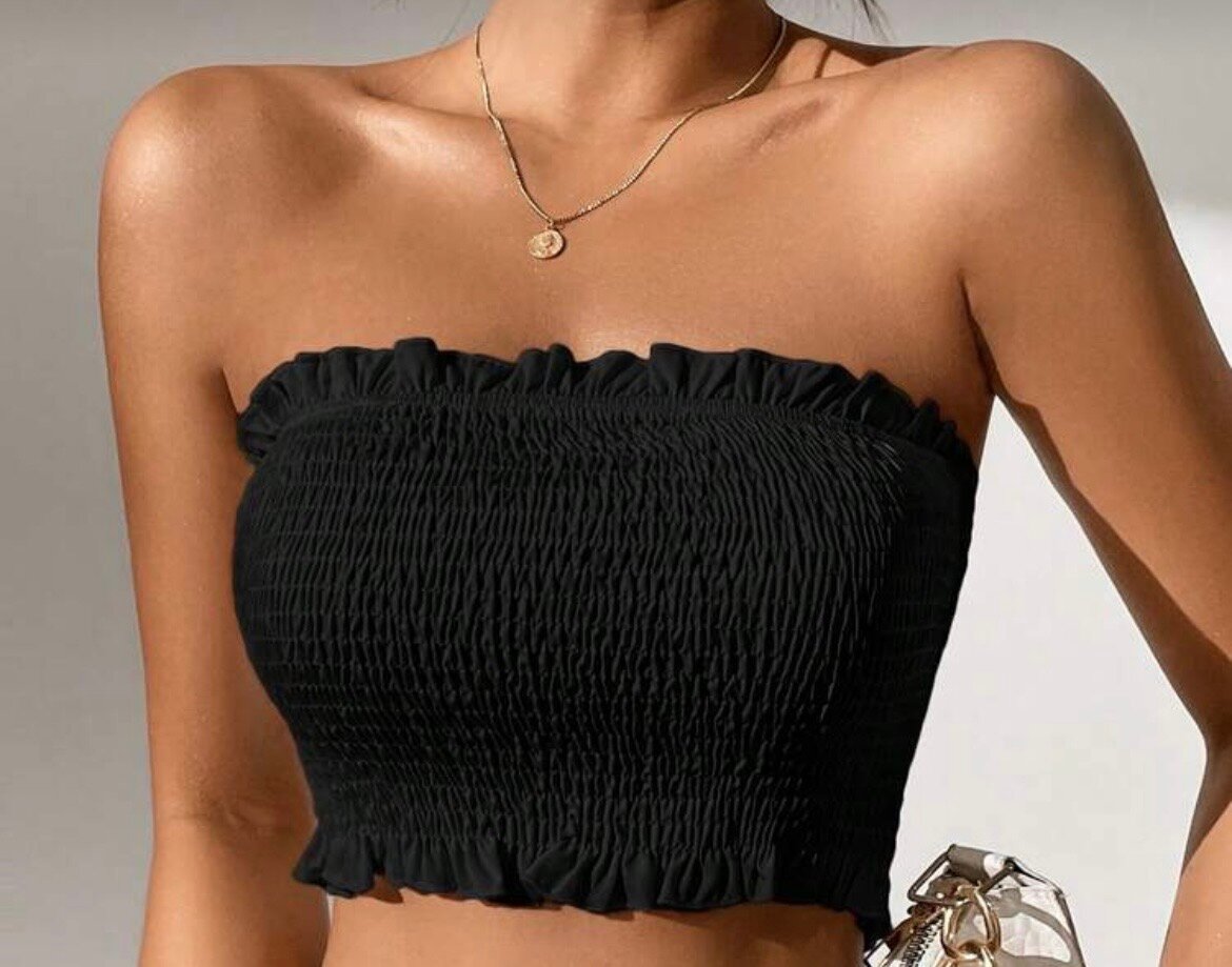 Optez pour ce top bandeau noir élégant, idéal pour un look estival tendance. Avec sa texture smockée et sa coupe flatteuse, il s'accorde parfaitement avec shorts, jupes ou pantalons taille haute. Parfait pour vos sorties entre amis ou soirées décontractées, ce top offre confort et style. Fabriqué à partir de matériaux de haute qualité pour une durabilité optimale.