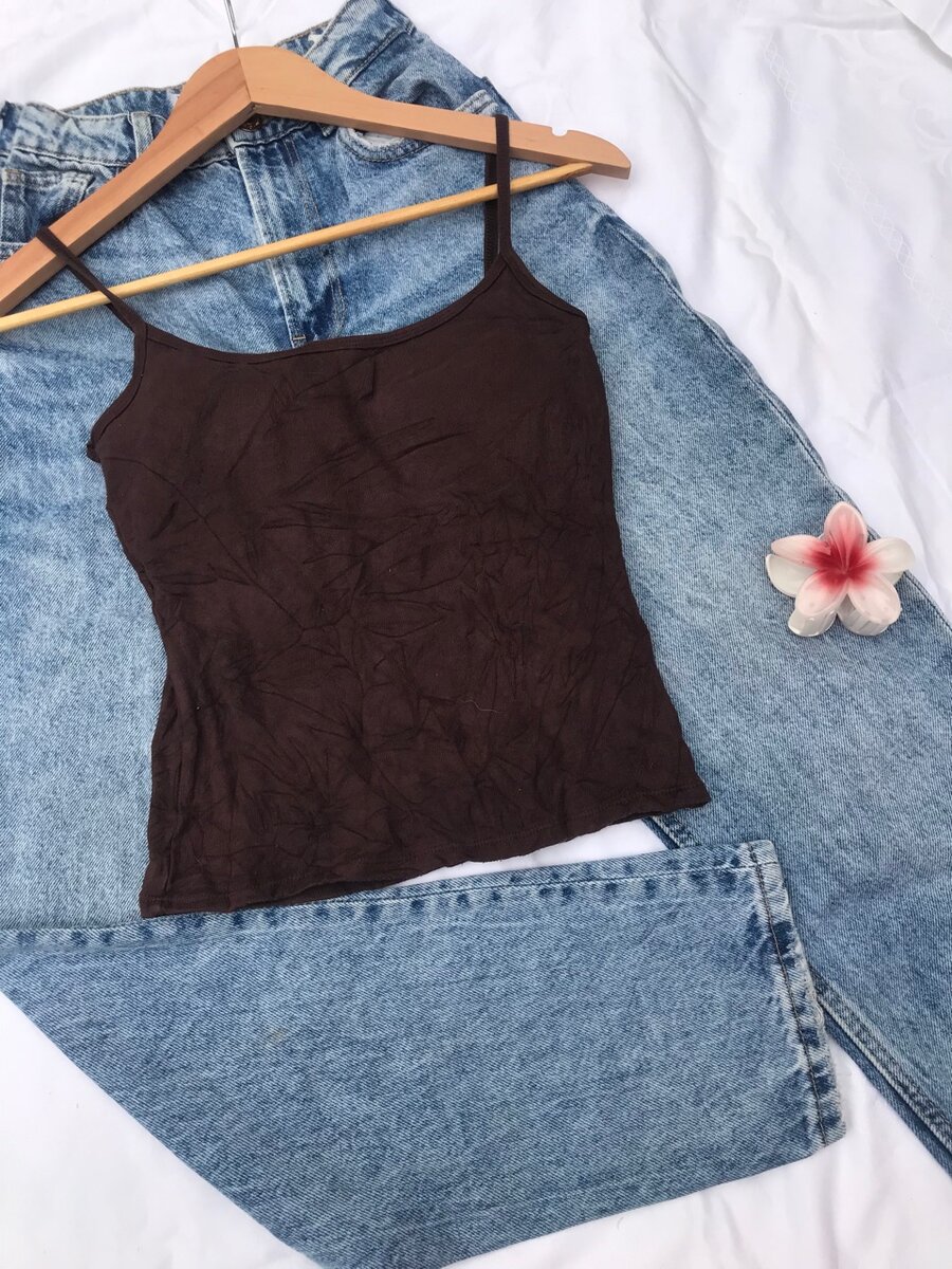 Ce top à bretelles marron est parfait pour un style décontracté et chic. Fabriqué à partir de matériaux légers, il s'accorde facilement avec un jean pour un look quotidien. Idéal pour les sorties estivales ou un après-midi entre amis.