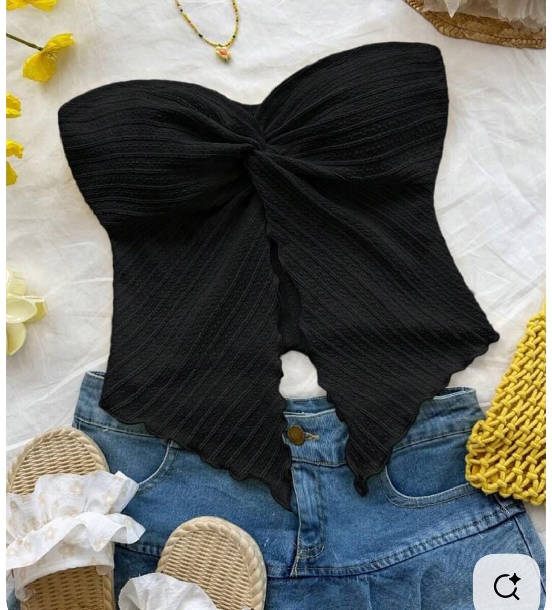 Découvrez ce top bustier plissé idéal pour une allure chic et élégante. Parfait pour les soirées ou sorties décontractées. Sa conception sans bretelles et son détail noué offrent un rendu unique qui met en valeur votre silhouette. Facile à assortir avec vos jupes ou jeans préférés. Faites sensation à chaque occasion avec ce vêtement incontournable.