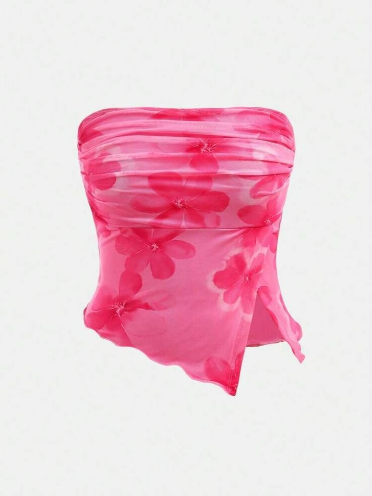 Élégant top bustier rose à motif floral éclatant, idéal pour un look estival féminin et séduisant. Confortable et stylisé. Parfait pour sorties estivales, plages ou soirées décontractées.