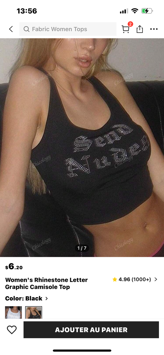 Élégant et stylé, ce top noir en camisole pour femme est décoré de lettres en strass, ajoutant une touche glamour à votre garde-robe. Parfait pour une sortie en soirée ou un look décontracté lors d'une journée en ville. Confortable et tendance, c'est un must-have pour les fashionistas.