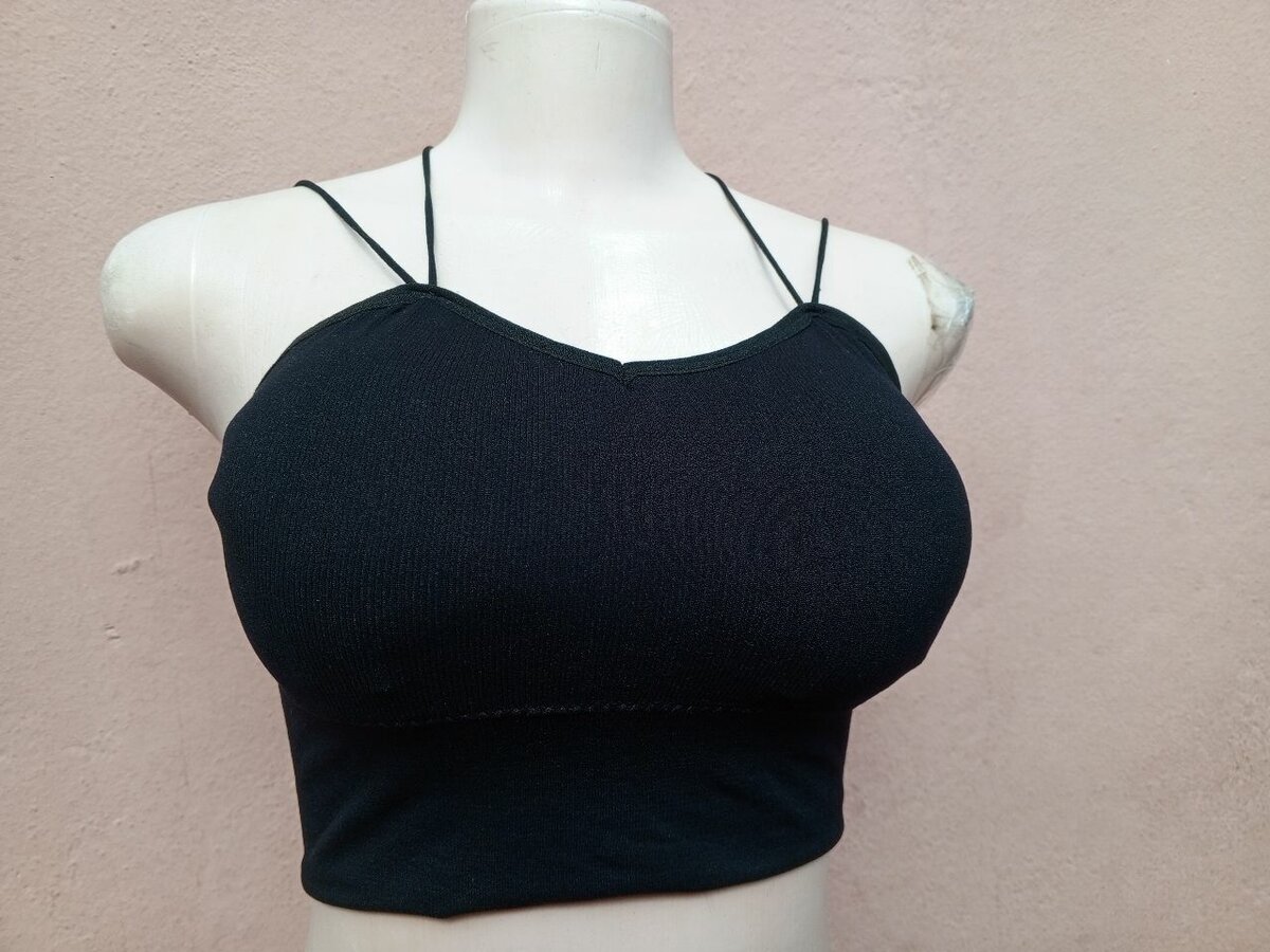 Découvrez ce top court à bretelles croisés au dos, parfait pour les looks estivaux et les tenues décontractées.