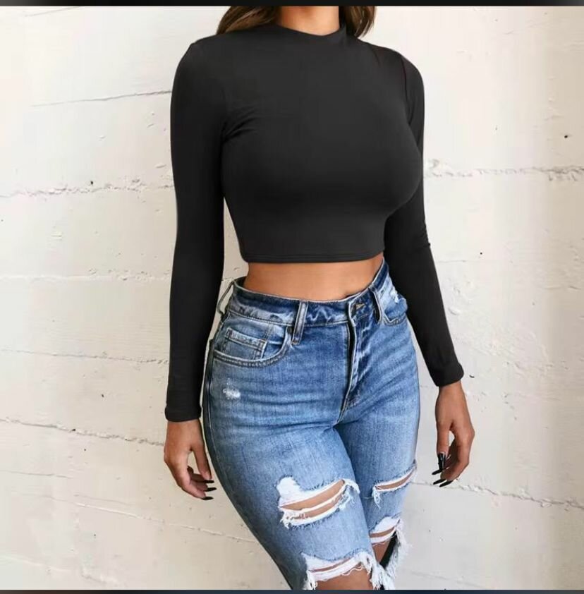 Découvrez notre top court à manches longues, parfait pour un look casual et moderne. Fabriqué en tissu doux et extensible, il offre un ajustement confortable et flatteur. Idéal pour le quotidien ou une soirée, ce haut polyvalent se marie parfaitement avec un jean taille haute ou une jupe chic. Disponible en plusieurs couleurs élégantes. Mettez en valeur votre style et votre silhouette avec ce must-have incontournable!
