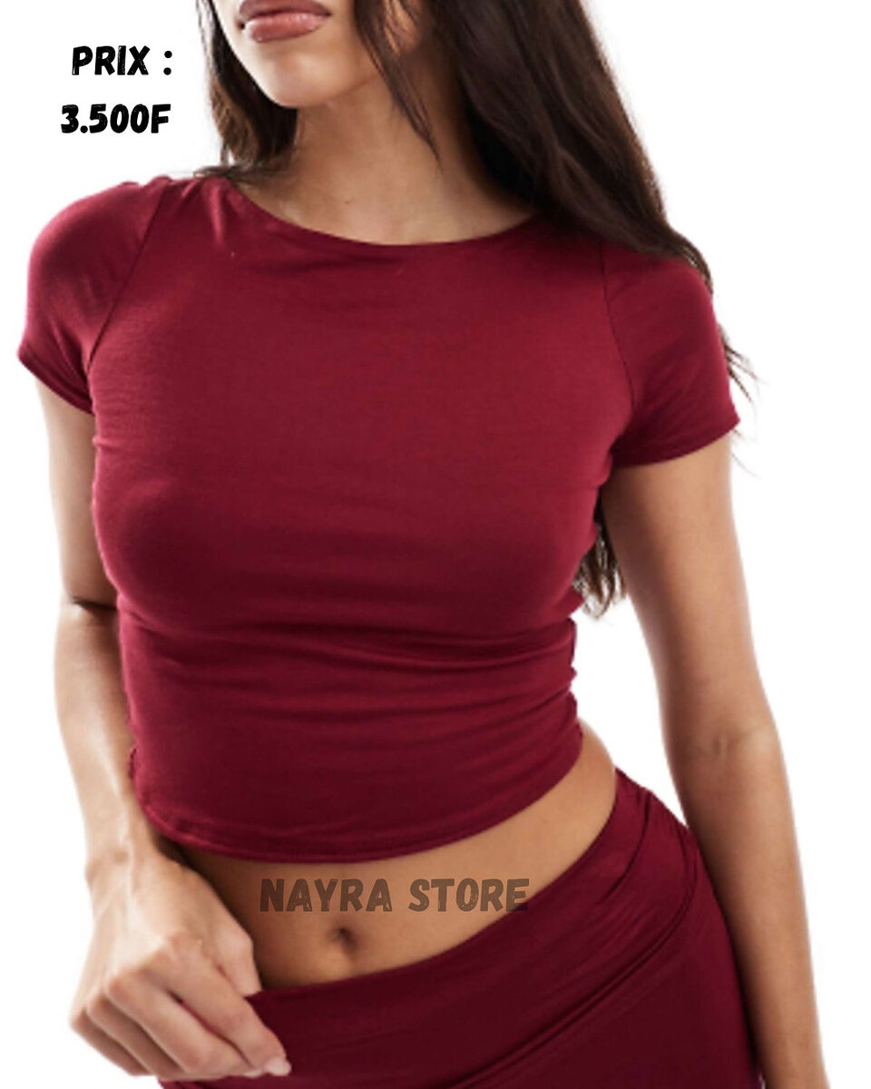 Découvrez ce top court élégant en bordeaux. Parfait pour un look tendance et décontracté, il s'adapte à toutes vos tenues et met en valeur votre silhouette. Idéal pour l'été ou les sorties entre amis. Sa matière douce assure un confort optimal. Faites sensation avec ce must-have au quotidien!
