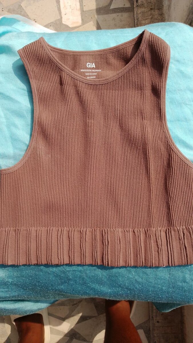 Découvrez ce top court côtelé pour femme, idéal pour un look décontracté et stylé. Fabriqué avec des matériaux confortables, parfait pour l'été. Facile à assortir avec vos tenues préférées!