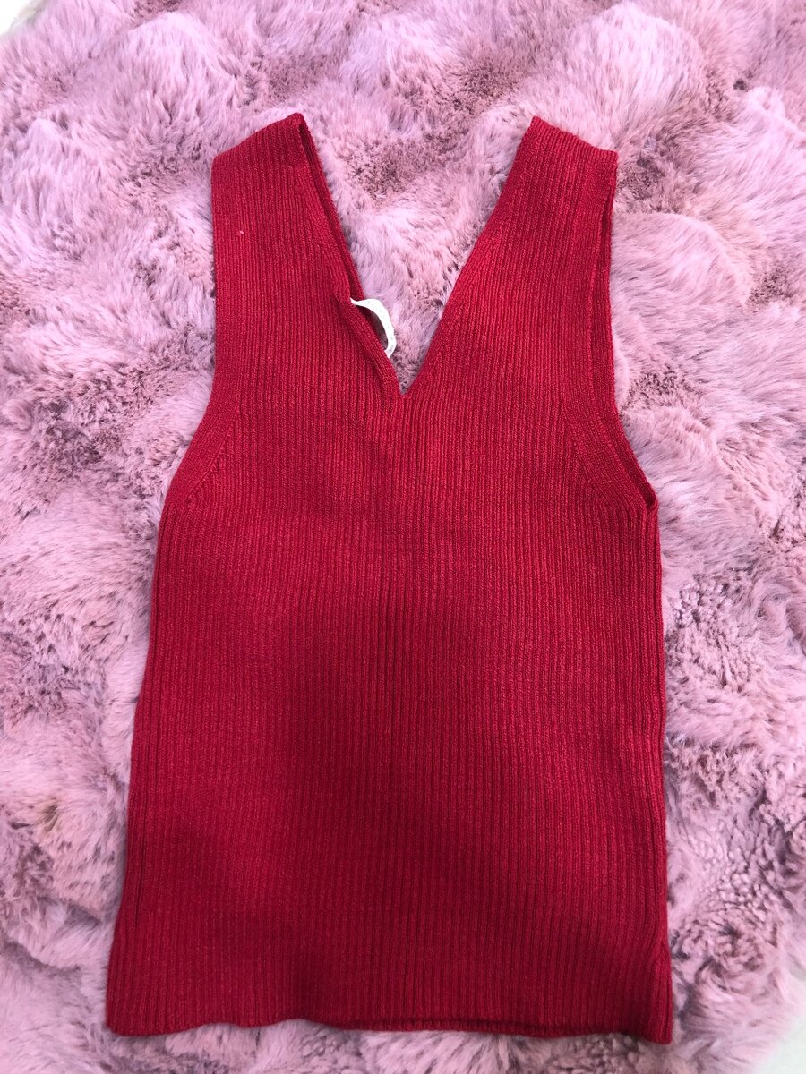 Top court rose côtelé pour femme