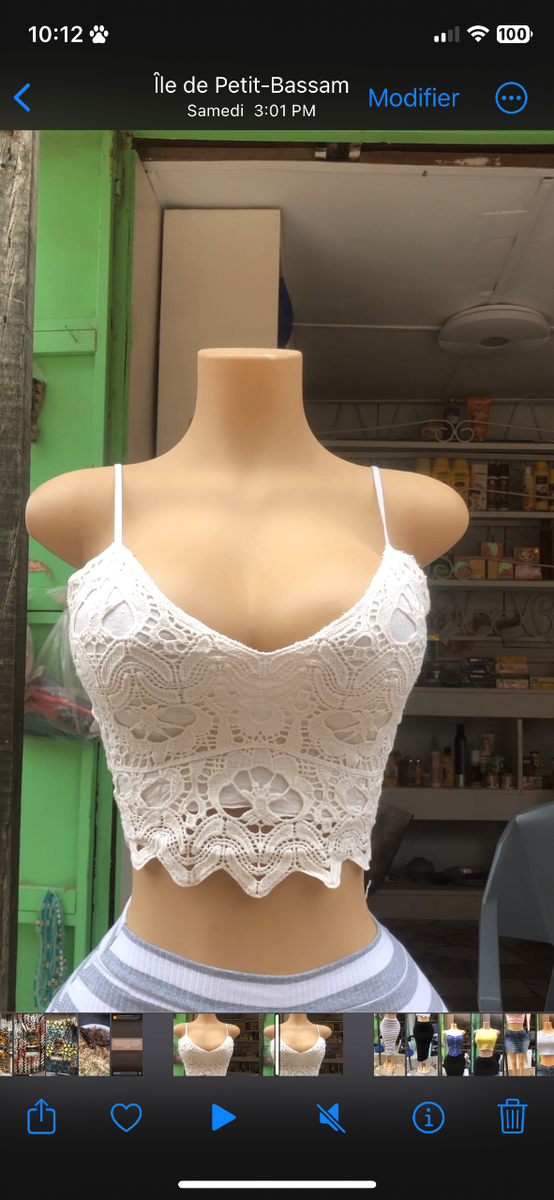 Optez pour ce magnifique top court en dentelle blanche, parfait pour un look estival et élégant. Avec ses bretelles fines et son design délicat, il s'accorde parfaitement avec une jupe ou un jean taille haute. Indispensable pour vos sorties décontractées ou soirées entre amis.