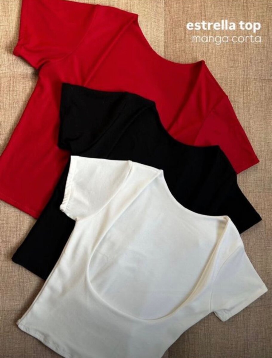 Top court polyvalent Estrella, parfait pour toutes occasions. Fabriqué en tissu doux et élastique, disponible en rouge, noir et blanc. Idéal pour des tenues décontractées ou élégantes. Offrez à votre garde-robe une touche de modernité et de confort.
