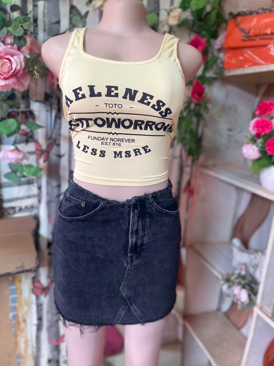 Ajoutez une touche tendance à votre garde-robe avec ce top court jaune pour femmes. Confortable et stylé, il est parfait pour l'été. Portez-le avec votre jean préféré ou une jupe pour un look décontracté et à la mode.