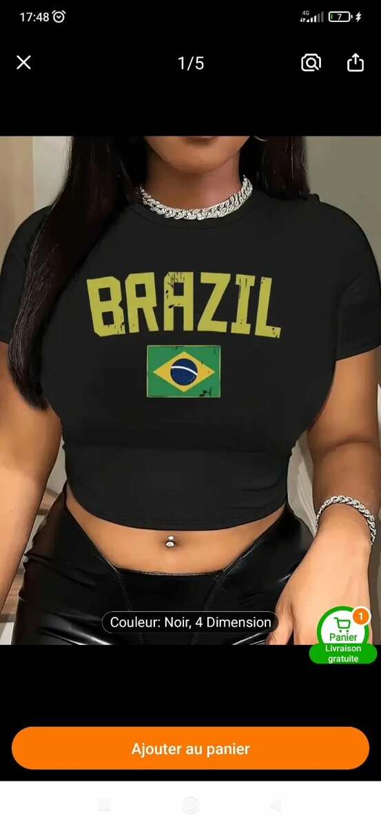 Exprimez votre passion pour le Brésil avec ce top court noir élégant pour femme. Conçu avec un imprimé audacieux "Brazil" et le drapeau, c'est le choix idéal pour afficher votre style unique. Parfait pour les sorties décontractées ou les événements sportifs. Matière douce et confortable.