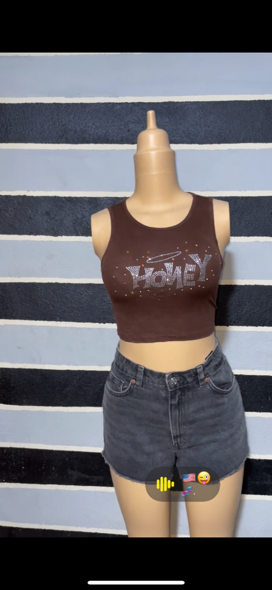Ce top court sans manches 'Honey' est parfait pour un look décontracté et tendance. Conçu pour s'adapter confortablement, il met en avant votre style personnel avec sa couleur marron et son imprimé audacieux. Idéal pour une sortie entre amis ou une journée décontractée, ce haut est un must-have pour toute garde-robe moderne. Associez-le avec une jupe ou un short en jean pour une allure estivale.