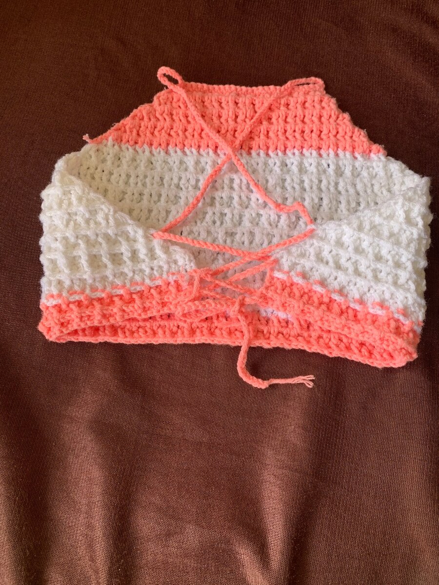 Découvrez ce charmant top crocheté à la main en bicolore, parfait pour une tenue estivale décontractée. Confortable et léger, il se distingue par son design moderne et ses couleurs vibrantes. Idéal pour un look tendance et artisanal.