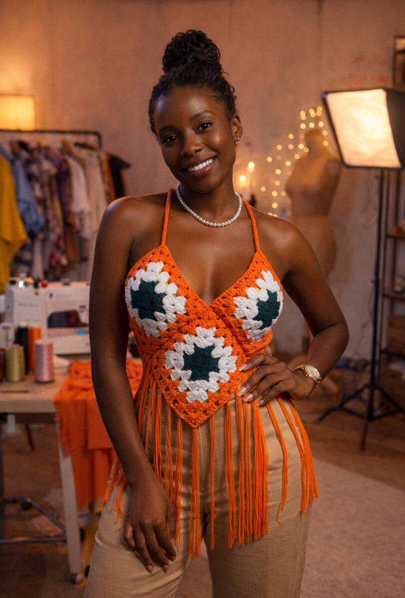 Ce top crochet vibrant est l'ajout parfait pour un look estival chic et bohème. Fabriqué à la main, il offre confort et style avec ses motifs colorés et ses franges élégantes. Idéal pour des sorties décontractées ou des festivals, il se mariera parfaitement avec un jean ou un short léger. Laissez-vous séduire par son allure unique et sa touche artisanale!