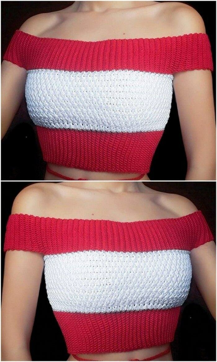 Ce top crocheté allie style et confort avec ses couleurs rouge et blanc vibrantes. Idéal pour l'été, il met en valeur les épaules et épouse harmonieusement le corps. Parfait pour une sortie décontractée ou une soirée estivale.