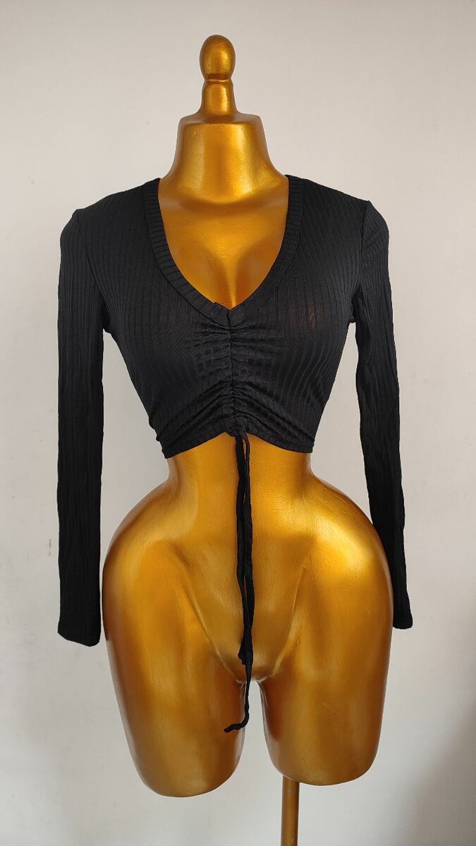 Ajoutez un style audacieux à votre garde-robe avec ce haut court froncé noir pour femme. Confectionné dans un tissu doux et extensible, il offre un confort exceptionnel tout en mettant en valeur votre silhouette. Idéal pour les sorties décontractées ou les soirées, ce haut s'associe parfaitement avec des jeans ou des jupes taille haute. Un incontournable pour une allure chic et moderne.