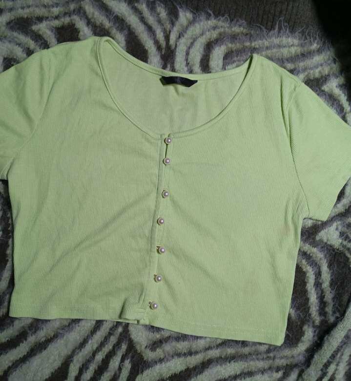 Ajoutez une touche de fraîcheur à votre garde-robe avec ce t-shirt cropped vert. Confortable et stylé, parfait pour les journées décontractées. Boutons décoratifs ajoutent une élégance subtile. Portez-le avec un jean ou une jupe pour un look tendance.
