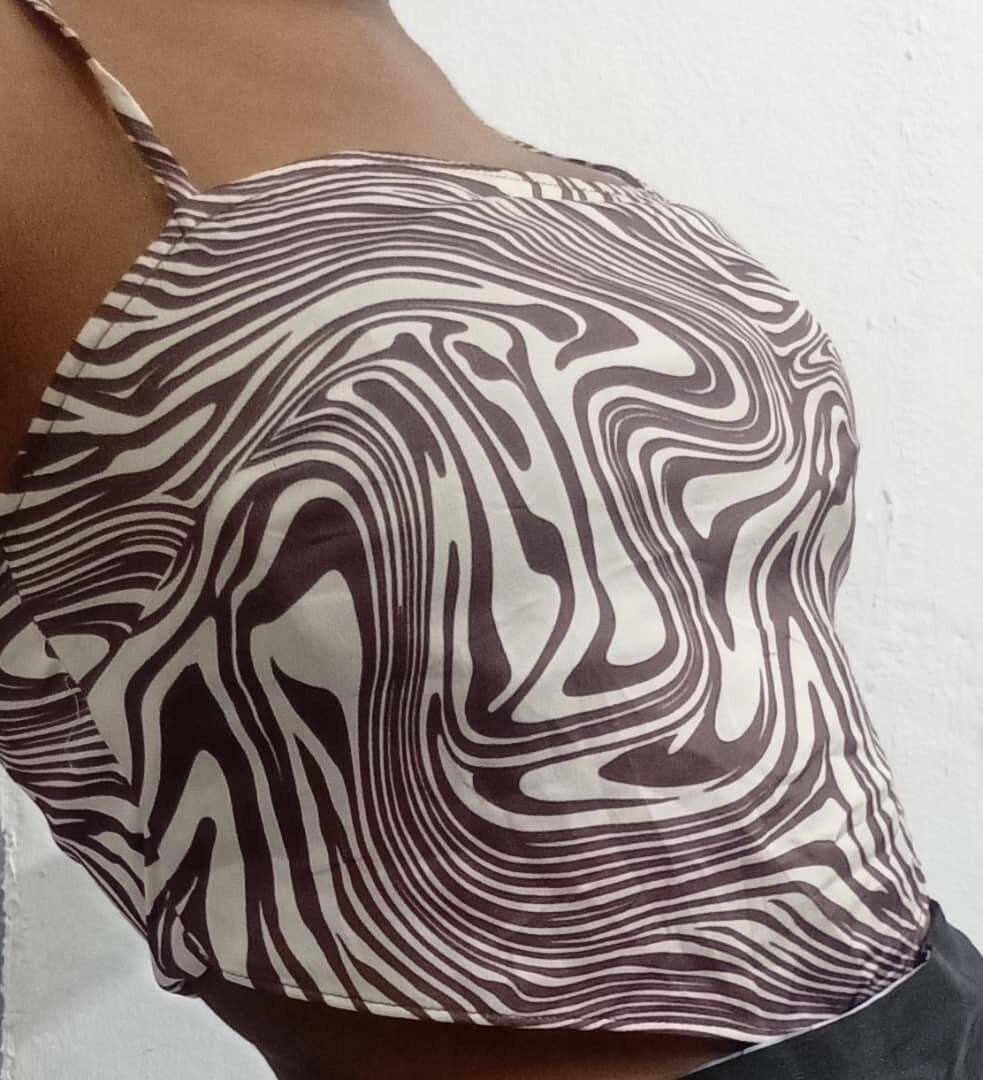 Découvrez ce top dos nu avec un motif unique. Parfait pour l'été, ce top léger et stylé apportera une touche moderne et audacieuse à votre garde-robe. Conçu pour un confort optimal, il s'adapte à toutes vos occasions décontractées. Ajoutez de la personnalité à vos tenues avec cet incontournable.