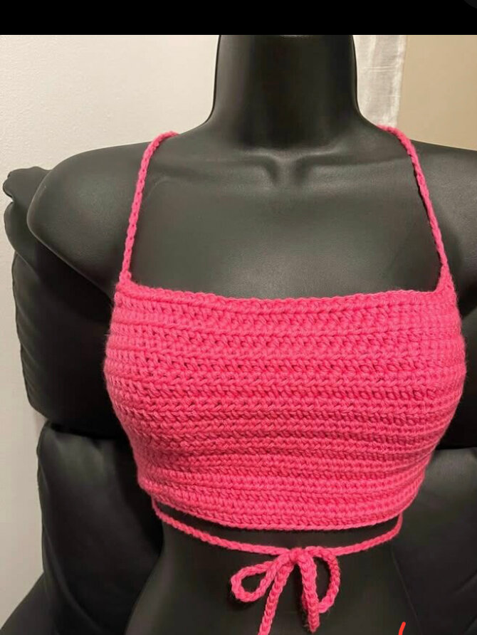 Ajoutez une touche tendance à votre garde-robe estivale avec ce top en crochet rose vif. Parfait pour les journées chaudes, ce haut est à la fois confortable et stylé avec ses bretelles fines et son design noué à l'avant. Idéal pour la plage ou une sortie décontractée!
