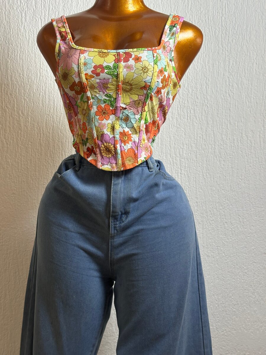 Ajoutez une touche de vintage avec ce top fleuri à corset. Parfait pour un look rétro-chic, il s'accorde parfaitement avec un jean ou une jupe. Idéal pour les sorties estivales ou les soirées décontractées. Confortable et tendance, c'est un must-have pour votre garde-robe. Vêtements FRIPERIES