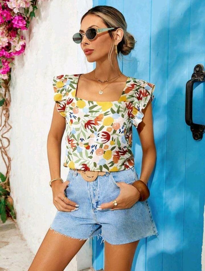 Ajoutez une touche de fraîcheur estivale avec ce top fleuri à manches volantes. Idéal pour les journées ensoleillées, il est parfait pour une tenue décontractée chic. Associez-le à un short en jean et des accessoires bohèmes pour un look tendance et confortable. Fabriqué dans un tissu léger pour plus de confort.