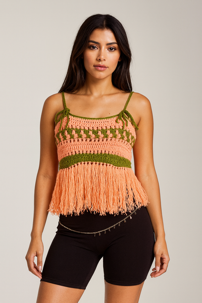 Top crochet bicolore bohème