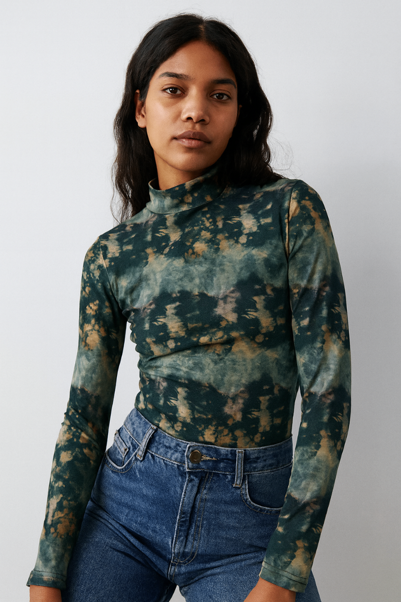 Optez pour ce haut ajusté à manches longues pour un look moderne et tendance. Son motif unique et ses couleurs captivantes apporteront une touche d'originalité à votre garde-robe. Idéal pour un style chic et décontracté, parfait à associer avec un jean ou une jupe.