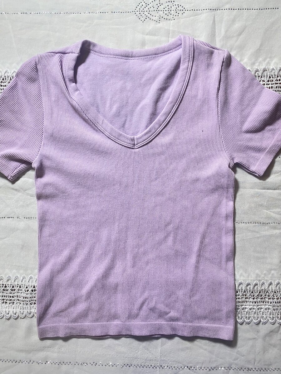 T-shirt court encolure V femme