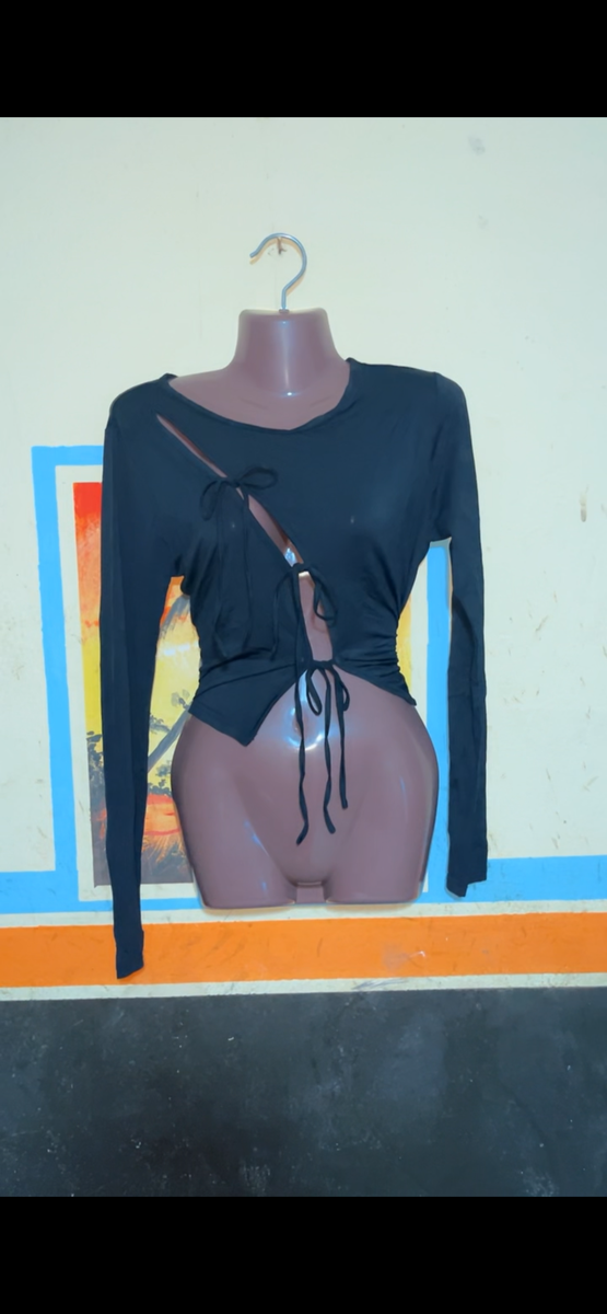 Chic et moderne, ce top noir à manches longues et lacets est parfait pour toute occasion. Fabriqué en tissu confortable et extensible, il met en valeur votre silhouette. Idéal pour une soirée ou un look décontracté, il s'adapte facilement à votre style personnel. Ne manquez pas ce must-have dans votre garde-robe!