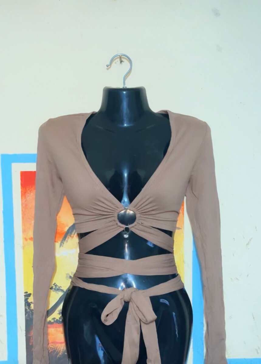 Découvrez ce top noué marron avec manches longues, idéal pour une tenue élégante et moderne. Confortable et stylé, il est parfait pour une soirée ou une sortie décontractée. Sa coupe originale et son design unique feront tourner les têtes.