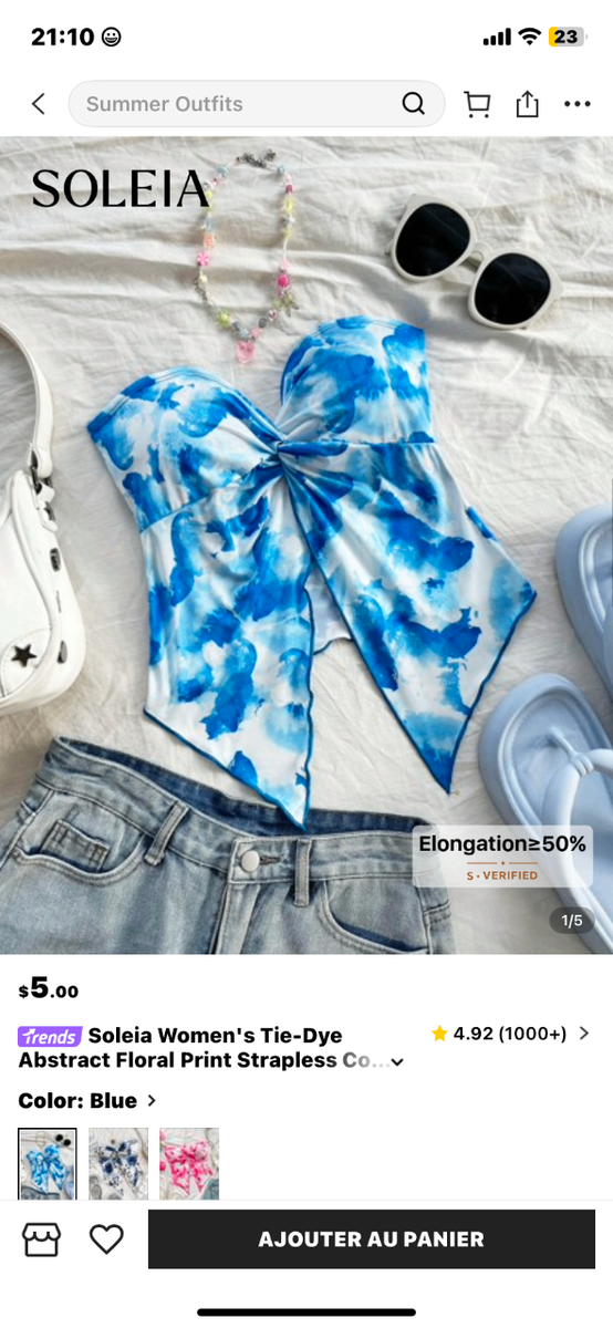 Ajoutez une touche de fraîcheur estivale à votre garde-robe avec ce top sans bretelles au motif tie-dye bleu. Parfait pour les journées ensoleillées, il offre un confort optimal grâce à sa coupe légère. À combiner avec un jean ou une jupe pour un look décontracté et stylé.