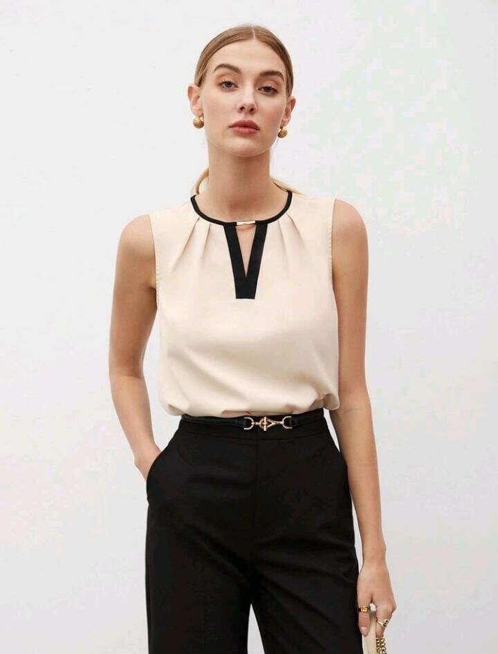 Ce top sans manches élégant pour femme est parfait pour un look moderne et raffiné. Fabriqué dans un tissu léger et respirant, il allie confort et style. La découpe chic du col et la coupe fluide mettent en valeur votre silhouette. Idéal pour le bureau ou une sortie en ville, ce haut se marie facilement avec un pantalon habillé ou une jupe élégante. Faites sensation avec ce vêtement indispensable dans votre garde-robe!