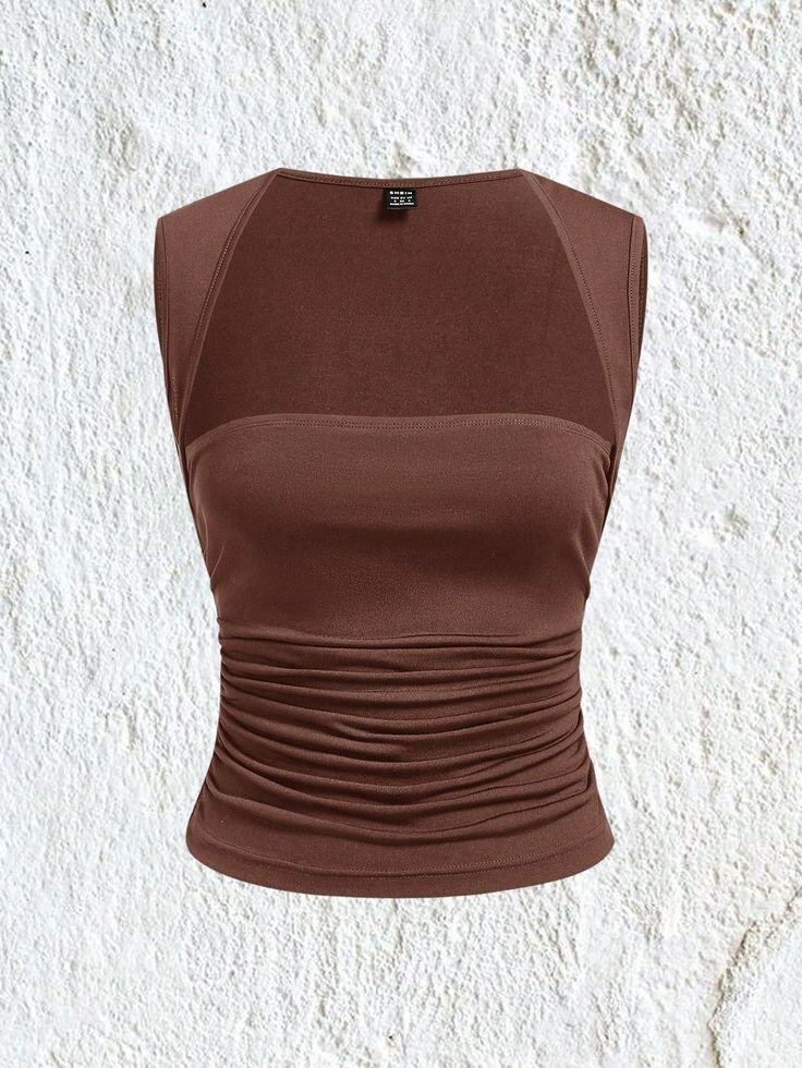 Ce top sans manches en tissu doux est idéal pour un style chic et moderne. Sa coupe ajustée et ses détails plissés créent une silhouette flatteuse, parfaite pour des événements décontractés ou des sorties en soirée. Associez-le à un pantalon ou une jupe pour un look sophistiqué.