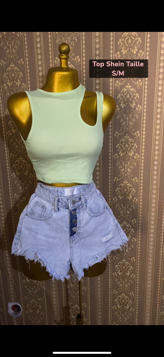 Ce top sans manches vert menthe est parfait pour une tenue décontractée et stylée. Avec un design moderne et une coupe ajustée, il est idéal pour l'été. Combinez-le avec un short ou un jean pour un look frais et tendance.