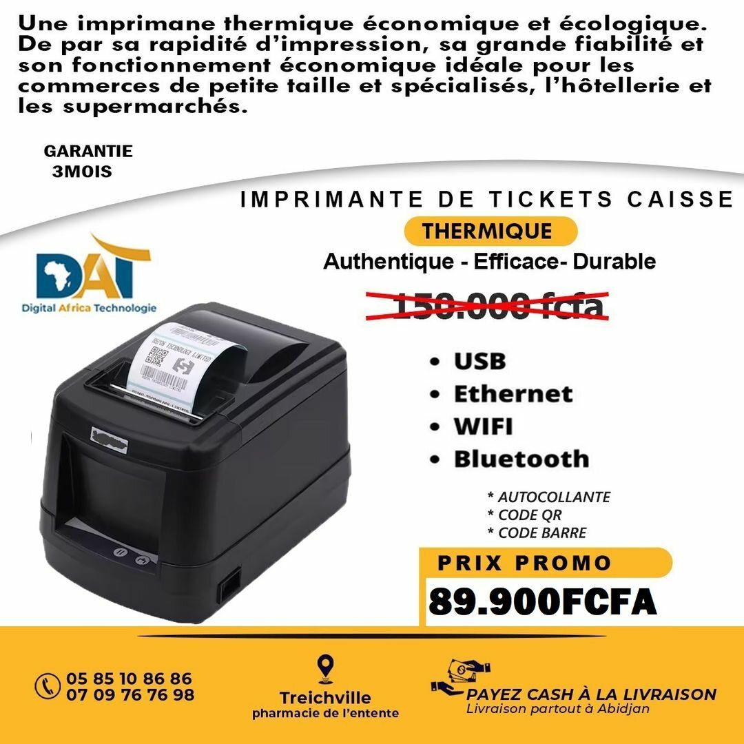 De par sa rapidité dimpression, sa grande fiabilité et son fonctionnement économique, l'imprimante THERMIQUE pour vos reçus est idéale pour les commerces de petite taille et spécialisés, lhôtellerie et les supermarchés.