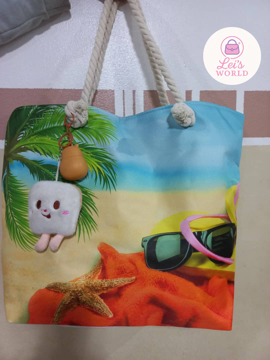 Parfait pour des journées ensoleillées, ce sac arbore un design tropical vibrant, orné d'accessoires amusants. Profitez d'un espace pratique pour vos essentiels estivaux tout en ajoutant une touche de style à votre tenue estivale.