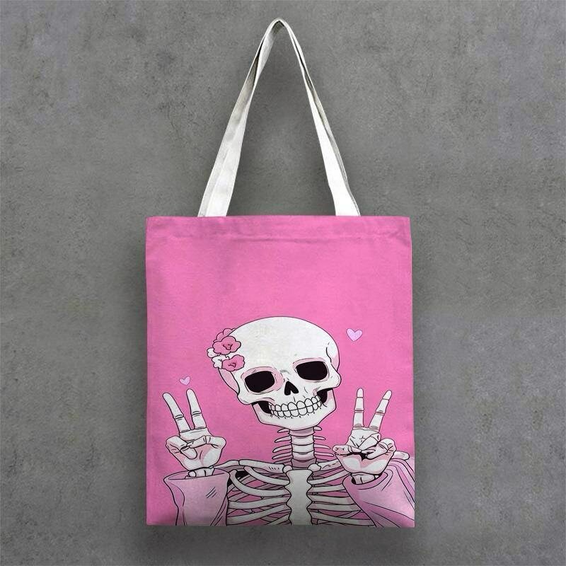 Ce sac cabas étonnant en rose avec motif squelette est idéal pour les courses et sorties stylées. Durable et spacieux, parfait pour tous les jours.
