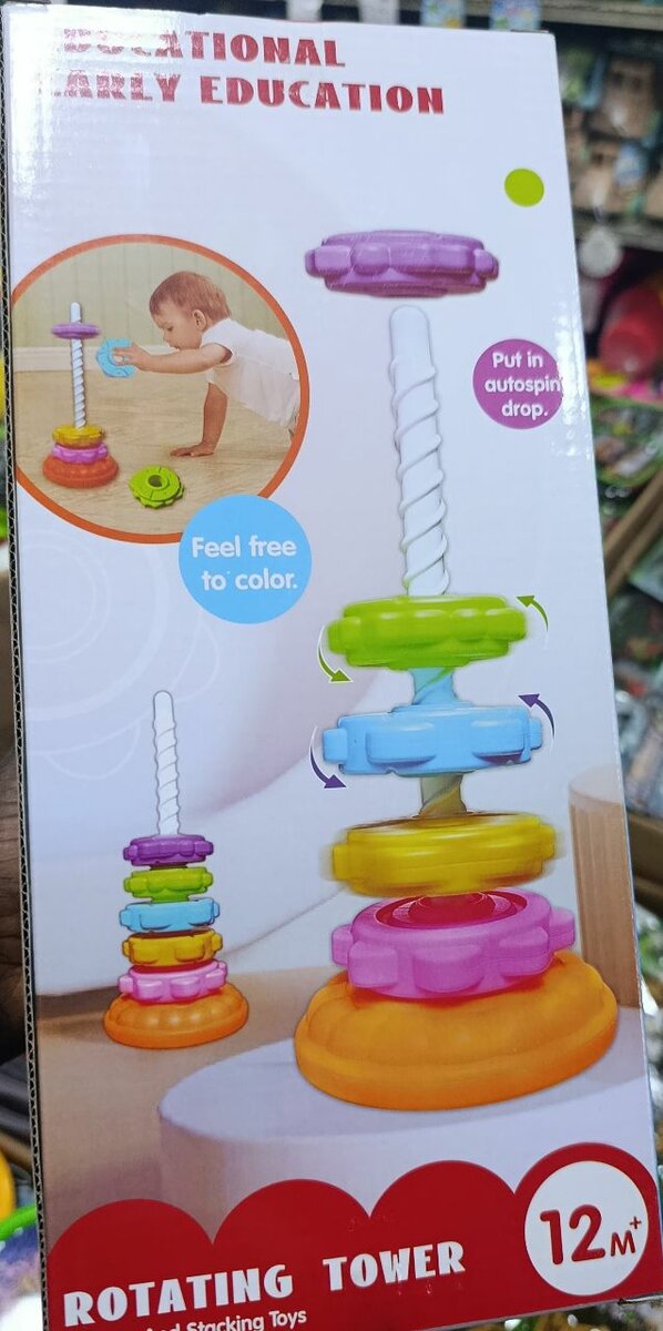Cette tour rotative colorée est parfaite pour les bébés de 12 mois et plus. Encourage le développement moteur et la coordination main-œil grâce à une expérience de jeu interactive amusante. Idéale pour l'éducation précoce et l'amusement.