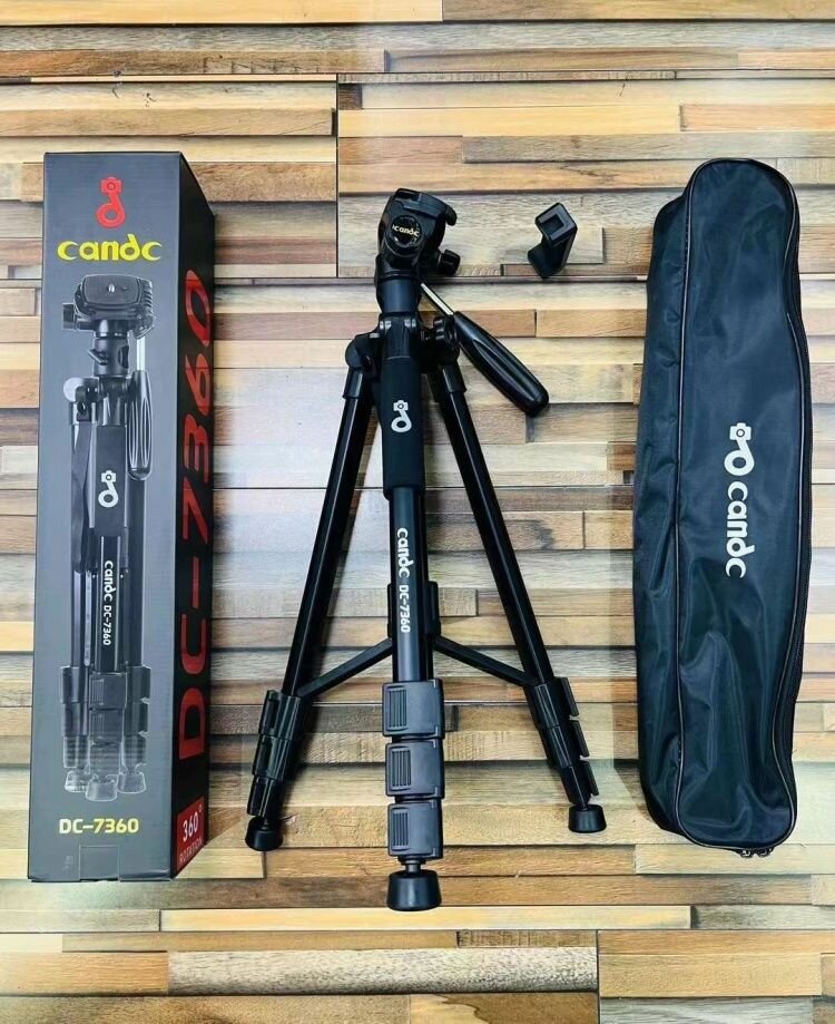 Trépied Candc DC-7360, robuste et léger. Idéal pour photographes et vidéastes, avec sac de transport inclus. Hauteur réglable et rotations fluides.