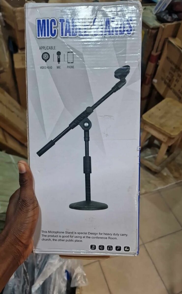 Support de microphone robuste et ajustable, idéal pour les conférences ou le studio. Conçu pour une portabilité facile avec une base stable. Compatible avec micro, téléphone et webcam.